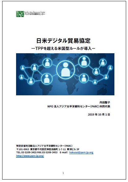 分析レポート「日米デジタル貿易―TPPを超える米国型ルールが導入ー」