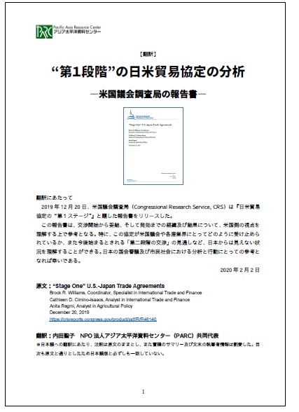翻訳:米国議会調査局(Congressional Research Service, CRS)による報告書『日米貿易協定の“第1ステージ”』